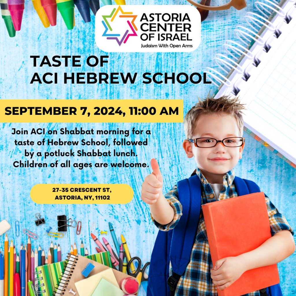 Join ACI on Shabbat morning for a taste of Hebrew School, followed by a potluck Shabbat lunch.