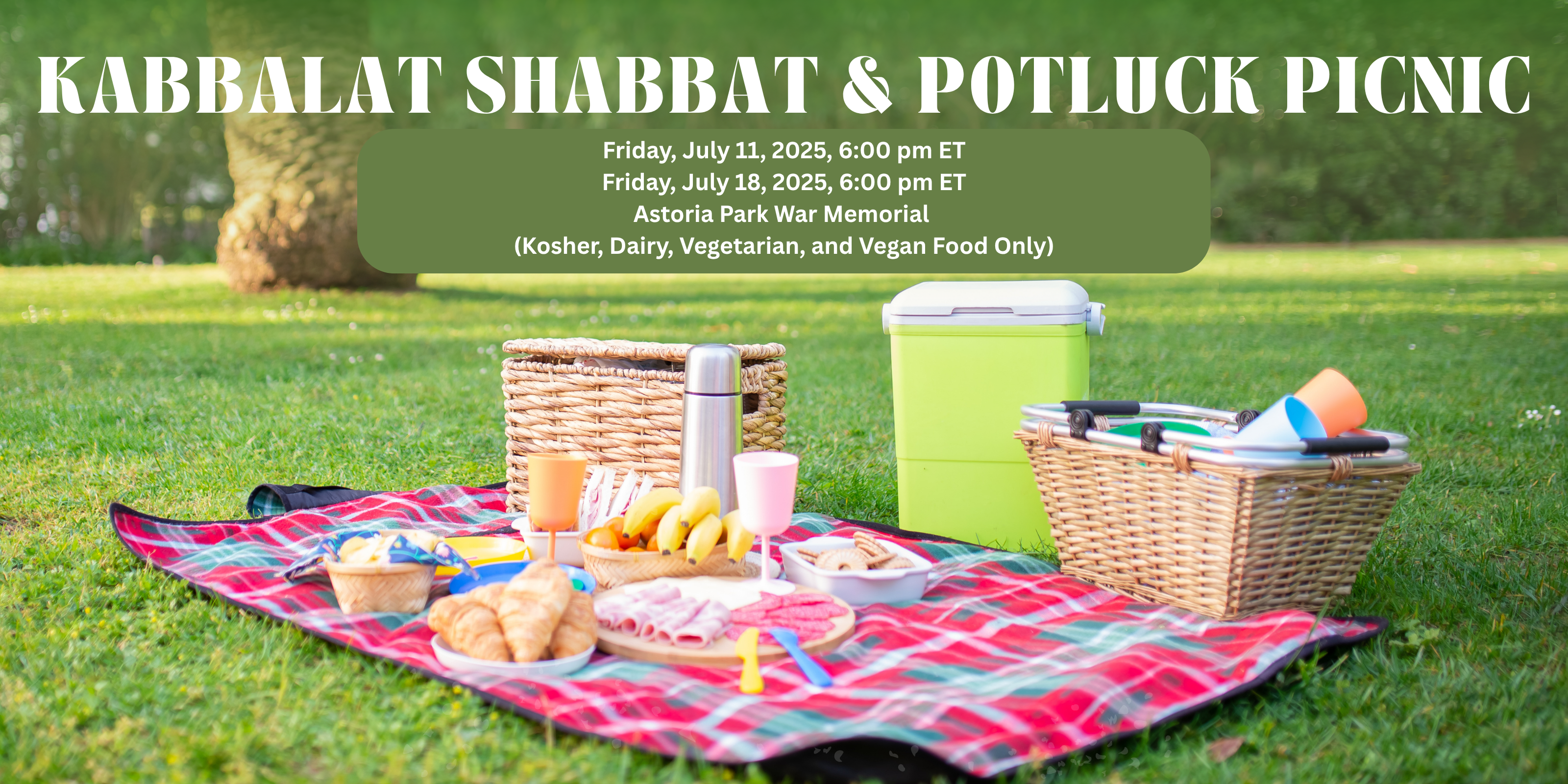 Join the ACI Community for Kabbalat Shabbat and a potluck Shabbat dinner on Friday, July and Friday, July 18, 2025, at 6:00 p.m. ET in Astoria Park by the War Memorial.