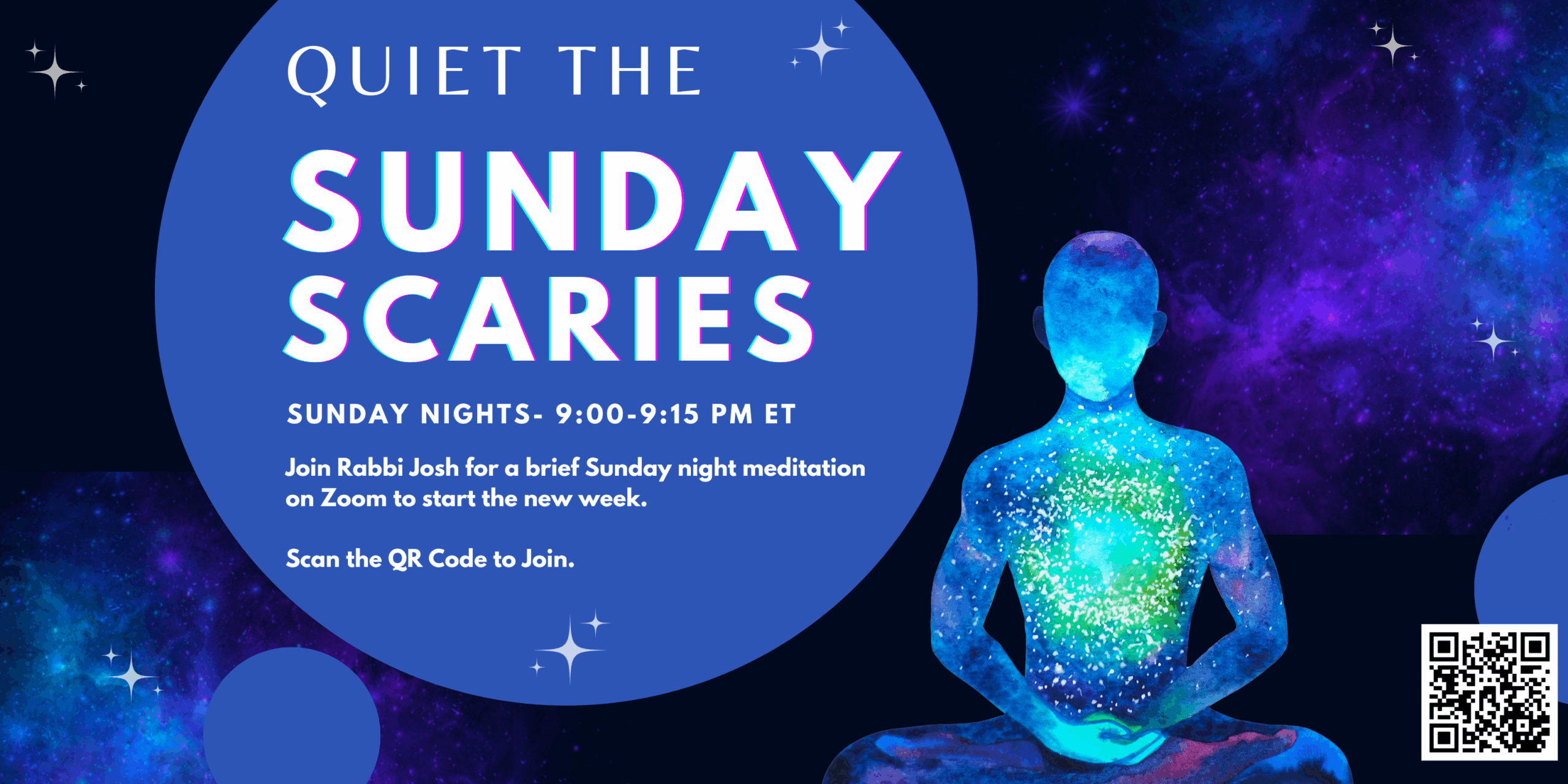 Starting September 8, 2025, join Rabbi Josh each Sunday night from 9:00-9:15 pm ET on Zoom for a brief meditation to close out the weekend and start the new week with calmness, focus, and purpose. Our meditation is open to anyone who wants a few minutes of quiet to center themselves.