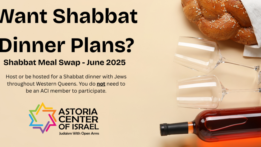 Spend Shabbat with Jews across Western Queens. Our Shabbat Meal Swap will give people a chance to attend a Shabbat dinner in someone else’s home or host someone for their Shabbat dinner. Anyone is welcome to volunteer…