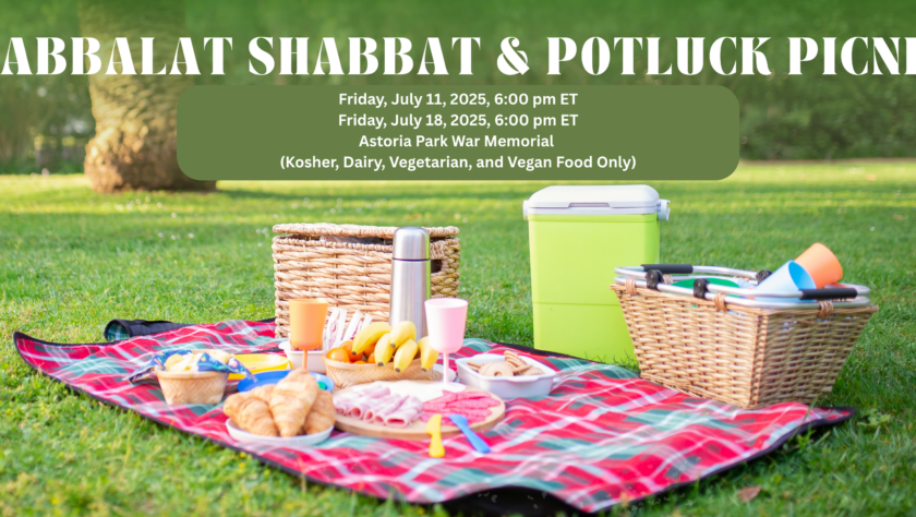 Join the ACI Community for Kabbalat Shabbat and a potluck Shabbat dinner on Friday, July and Friday, July 18, 2025, at 6:00 p.m. ET in Astoria Park by the War Memorial. If you can bring a Kosher/Dairy/Vegetarian/Vegan dish for…