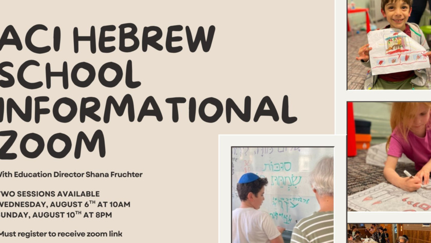 Interested in Hebrew School at ACI? Join for an informational session before registration opens up for the 2025-2026 school year. Open to current families, new families and prospective families. ACI Hebrew School Informational Zoom with Education Director Shana…