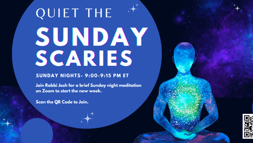 Starting September 8, 2025, join Rabbi Josh each Sunday night from 9:00-9:15 pm ET on Zoom for a brief meditation to close out the weekend and start the new week with calmness, focus, and purpose. Our meditation is…